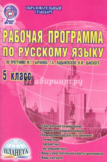 основе авторской программы (авторов М.Т. Баранова, Т.А. Ладыженской, Н.М. Шанского) с учетом линий УМК, вошедших в Федеральный перечень учебников на 2012-2013 учебный год. Рабочая программа составлена с учетом требований Федерального государственного образовательного стандарта второго поколения и Примерной программы основного общего образования по русскому языку. Книга предназначена для учителей-предметников, завучей, методистов, студентов и магистрантов педагогических вузов, слушателей курсов повышения квалификации