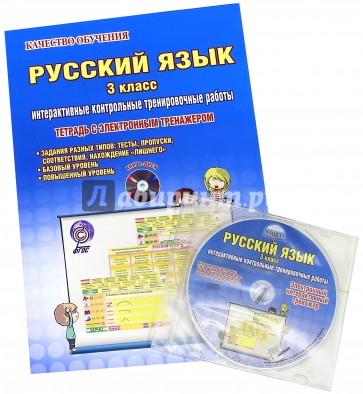 Тетрадь выходит в комплекте с электронным тренажером (CD-диск), который поможет ученикам третьего класса качественно готовиться к урокам русского языка дома, выполняя задания на компьютере. Электронный тренажер дает школьникам возможность многократного выполнения заданий, что позволяет повысить качество знаний по предмету.