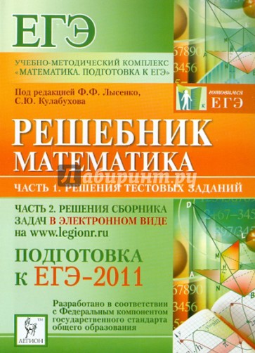 Часть I - пособие, которое Вы держите в руках. Оно содержит решения всех вариантов учебно-тренировочных тестов учебно-методического пособия "Математика. Подготовка к ЕГЭ-2011." за исключением решения варианта, представленного в самой книге.