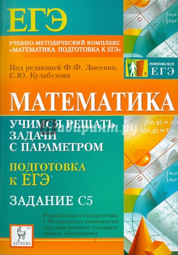Предлагаемое пособие "Математика. Учимся решать задачи с параметром. Подготовка к ЕГЭ: задание С5" адресовано учащимся 10- 11-х классов, а также их преподавателям. Оно состоит из вариантов тестовых заданий по отдельным темам: "Алгебраические выражения", "Уравнения", "Неравенства" и др., которые являются традиционными в курсе математики и поэтому входят в ЕГЭ. Согласно спецификации ЕГЭ-2011, задание С5 является уравнением, неравенством или системой с параметром. Однако начинать подготовку к ЕГЭ с решения задач подобного уровня неразумно из-за высокого уровня их трудности. В связи с этим авторы предлагают подготовительные тесты по основным темам, материал которых используется при решении задач с параметрами. Последняя глава содержит задачи, аналогичные заданиям С5 на предстоящем ЕГЭ.