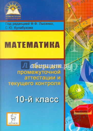 Пособие содержит 40 вариантов итоговых работ по математике, предназначенных для учащихся 10-х классов общеобразовательных учреждений. Авторы предлагают следующую структуру изложения материала: 20 вариантов, включающих задания с логарифмами без производной, и 20 вариантов, содержащих задания с производной без логарифмов.