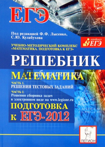 Часть I - настоящее пособие. Оно содержит решения всех вариантов учебно-тренировочных тестов пособия "Математика. Подготовка к ЕГЭ-2012" под редакцией Ф. Ф. Лысенко, С. Ю. Кулабухова, за исключением решения варианта, представленного в упомянутой выше книге.