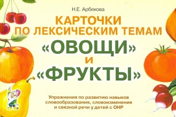 В данный комплект входит 32 двусторонние карточки с цветными изображениями фруктов и овощей в единственном и множественном числе и 16 опорных карточек с черно-белыми символами и схематичными изображениями различных предметов (для составления рассказов-описаний и рассказов-сравнений).