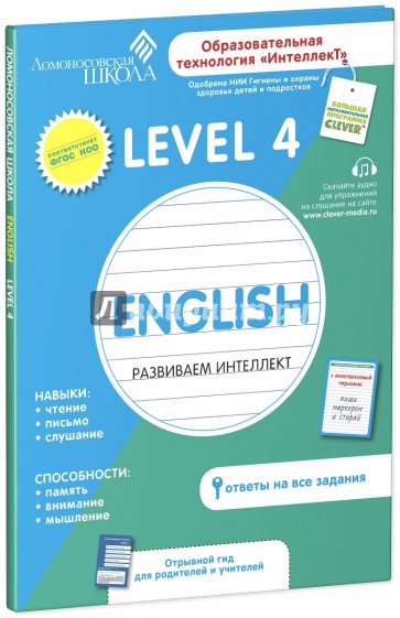 "Английский язык. Level 4" - долгожданное учебное пособие, продолжение серии Ломоносовская школа. Технология "Интеллект". Книга основана на уникальной методике одной из успешнейших частных школ Москвы - Ломоносовской школы. Это самая известная частная школа Москвы и одна из лучших школ России. Результаты ЕГЭ за 2013 год: на 20% выше средний балл по английскому языку; более 50% учеников Ломоносовской школы сдают кембриджский экзамен с максимальными баллами. Все это благодаря уникальной авторской методике - образовательной технологии "ИнтеллекТ".