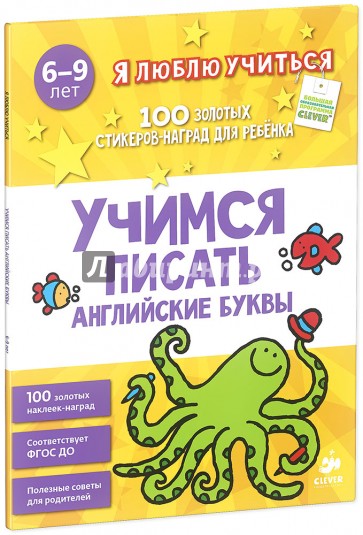 " Обучающая тетрадь "Учимся писать английские буквы" содержит золотые наклейки для поощрения успехов ребенка.