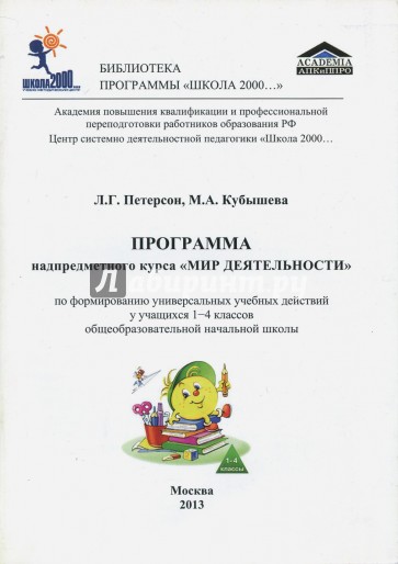 Программа надпредметного курса "Мир деятельности" для учащихся 1 - 4 классов общеобразовательной школы ориентирована на формирование у учащихся универсальных учебных действий (регулятивных, познавательных, коммуникативных, личностных) и умения учиться в целом, определяющего успешность любого человека как в учении, так и в жизни.