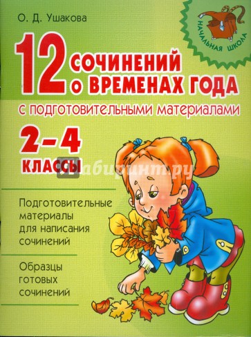 Предлагаемая книга состоит из двух частей. Первую часть составляют подготовительные материалы для написания сочинений: пословицы, поговорки, загадки, стихотворные отрывки, словарик эпитетов. Вторая часть книги представляет готовые образцы сочинений о временах года.