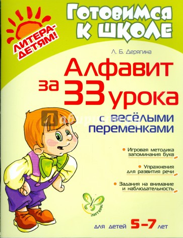 Книга состоит из 33 уроков с весёлыми переменками, которые помогут дошкольникам выучить алфавит. Также в ней представлены стихи и загадки про растения и животных.