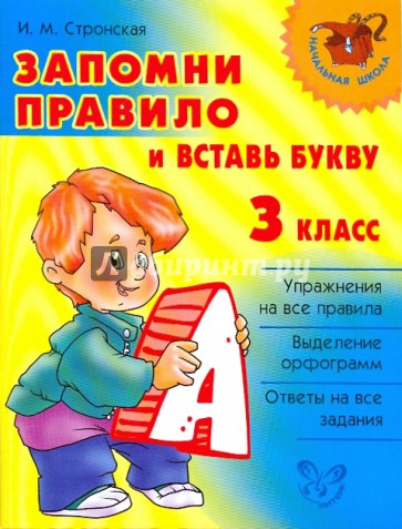 Данный сборник включает в себя упражнения на все правила (орфограммы) русского языка, изучаемые вами в 3-м классе, а именно: "Безударные гласные в корне слова", "Парные согласные в корне слова", "Непроизносимые согласные в слове", "Разделительный твёрдый знак (ъ)", "Мягкий знак (ъ) на конце имён существительных после шипящих", "Правописание приставок" и др.