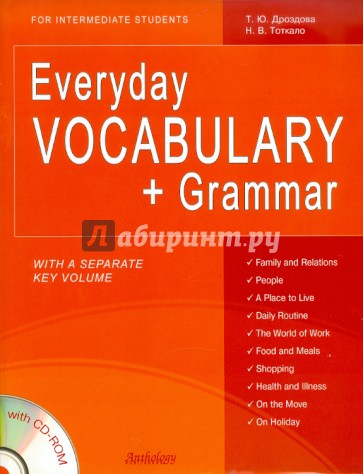 Учебное пособие Everyday VOCABULARY + Grammar предназначено для углублённого изучения слов и выражений по 10 темам повседневного общения (уровень intermediate). Отличительной особенностью издания является <параллельное> изучение лексики и грамматических конструкций, наиболее часто употребляемых в разговоре на заданную тему. К основному учебнику, который одновременно служит рабочей тетрадью, прилагается МР3 диск с озвученным лексическим материалом, текстами и диалогами. Отдельной книгой изданы ответы-ключи к упражнениям настоящего пособия, что позволяет его использовать для самостоятельной работы. Современное оформление, визуальные <опоры>, озвученный материал способствуют повышению эффективности работы с пособием.