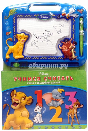 Весёлые зверушки из мультфильмов Диснея учатся считать! Присоединяйся к ним! Бемби, Дамбо, Балу, Симба, Тимон и Пумба познакомят тебя с цифрами от 1 до 10. Надписи, нанесённые на волшебную доску магнитным карандашом, легко стираются, поэтому ты сможешь наслаждаться этой книгой снова и снова!