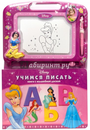 Прекрасные принцессы Диснея любят читать и писать! Если хочешь, они научат и тебя! Аврора, Белль, Золушка, Белоснежка, Ариэль, Жасмин и Мулан покажут тебе, как пишутся буквы алфавита от А до Я. С помощью волшебной доски и карандаша тебе удастся написать любое слово, какое захочешь! Надписи легко стираются, поэтому ты сможешь наслаждаться книгой снова и снова!