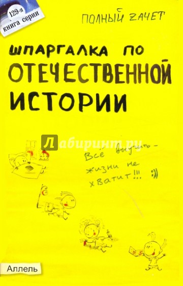 Все выучить - жизни не хватит, а экзамен сдать надо. Это готовая "шпора", написанная реальными преподоми. Здесь найдешь все необходимое по "Отечественной истории", а остальное - дело техники.