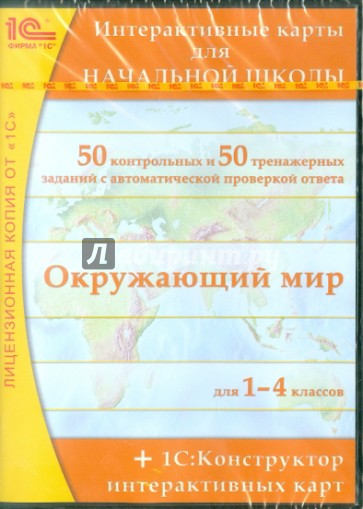 Диск содержит набор интерактивных карт для начальной школы и программную среду "1С: Конструктор интерактивных карт".