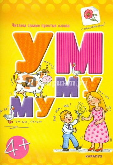 В нашей книжке ребёнок уже реально ЧИТАЕТ. Ему помогает в этом специально подобранный словесный материал (суперкороткие - односложные и двусложные - слова) и картинки, которые дают неразрывную образную связь между предметом или явлением и словом, его означающим.