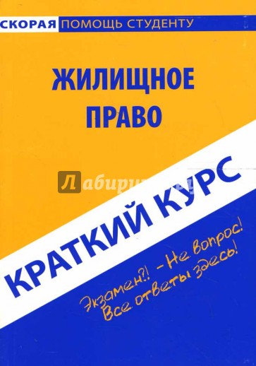 Настоящее издание представляет собой учебное пособие, подготовленное в соответствии с Государственным образовательным стандартом по дисциплине "Жилищное право". Материал изложен кратко, но четко и доступно, что позволит в короткие сроки его изучить, а также успешно подготовиться и сдать экзамен или зачет по данному предмету.