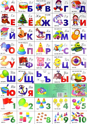 Яркая, красочная азбука для дошкольников и младшего школьного возраста. Разрежьте плакат на отдельные карточки с буквами и цифрами, и процесс обучения можно превратить в увлекательную игру.