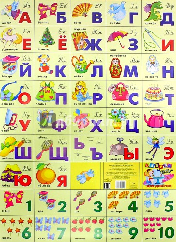 Яркая, красочная азбука для дошкольников и младшего школьного возраста. Разрежьте плакат на отдельные карточки с буквами и цифрами, и процесс обучения можно превратить в увлекательную игру.