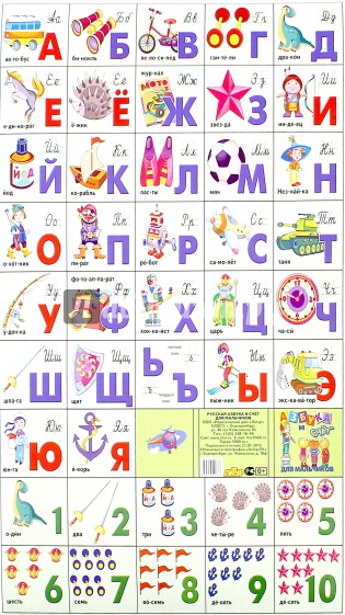 Яркая, красочная азбука для дошкольников и младшего школьного возраста. Разрежьте плакат на отдельные карточки с буквами и цифрами, и процесс обучения можно превратить в увлекательную игру.