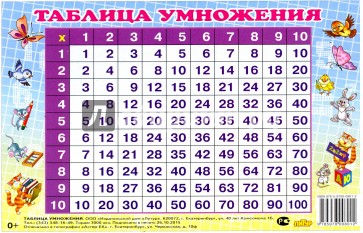 Учебный плакат для детей поможет в изучении таблицы умножения.Формат: 140x95 мм.
