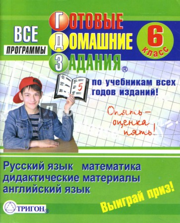 Настоящее пособие содержит выполненные домашние задания по русскому языку, математике, английскому языку и дидактическим материалам по математике для учащихся 6-х классов средних общеобразовательных школ, на базе учебников, используемых в подавляющем большинстве школ.