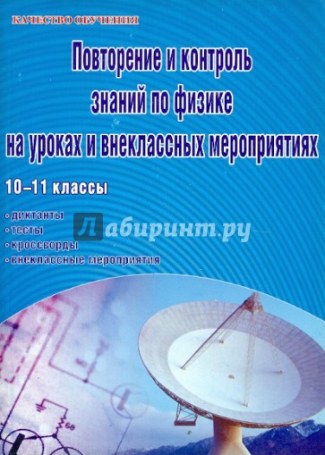 Перед учителем физики в 10-11 классах школы всегда остро стоит вопрос рациональной организации процесса контроля знаний учащихся. Материал очень объемный, сложный, и необходимо постоянно применять такие формы работы, чтобы за минимальное время опросить как можно больше учащихся и при этом выявить качество усвоения материала. А еще надо стремиться к тому, чтобы уроки проверки знаний были разнообразными и не вызывали паники у школьников. Данное методическое пособие адресовано учителям физики средней школы и содержит готовую систему контроля знаний учащихся 10-11 классов. Вопросы текущего контроля, физические диктанты и тесты, кроссворды, разработки уроков и внеклассных мероприятий - все это вы сможете применить по своему усмотрению и сделать свою работу еще более интересной и качественной.