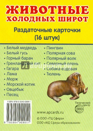 В наборе 16 карточек с изображением животных, обитающих в холодных широтах: