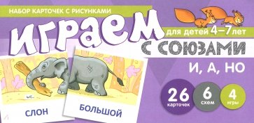 Комплект "Играем с союзами. Союзы и, а, но" представляет собой 12 обучающих картинок, состоящих из 26 карточек, 6 графических схем и 4 игр, и является тематическим продолжением комплекта "Играем со словами. В 2-х частях", выпущенного издательством "ТЦ Сфера". В игровой форме ребенок познакомится с часто употребляемыми союзами, освоит их смысловое значение, научится правильно использовать на занятиях по развитию речи и в повседневной жизни. Каждая из представленных игр направлена на формирование и развитие определенных умений, необходимых для полноценного развития речи.