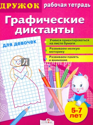 Мы представляем вашему вниманию серию книг "Графические диктанты". Занимаясь по этим книгам, ребёнок сможет развить мелкую моторику, умение ориентироваться на листе бумаги, усидчивость и внимание. Интересные игровые сюжеты сделают работу по книге увлекательной!