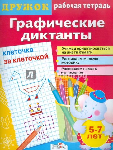 Мы представляем вашему вниманию серию книг "Графические диктанты". Занимаясь по этим книгам, ребёнок сможет развить мелкую моторику, умение ориентироваться на листе бумаги, усидчивость и внимание. Интересные игровые сюжеты сделают работу по книге увлекательной!