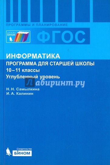 Издание содержит программу по информатике для 10-11 классов углубленного уровня, тематическое планирование, таблицы соответствия учебников требованиям Федерального государственного образовательного стандарта (ФГОС) и предназначено для использования при подготовке образовательной программы образовательного учреждения для старшей ступени общего образования в соответствии с ФГОС.