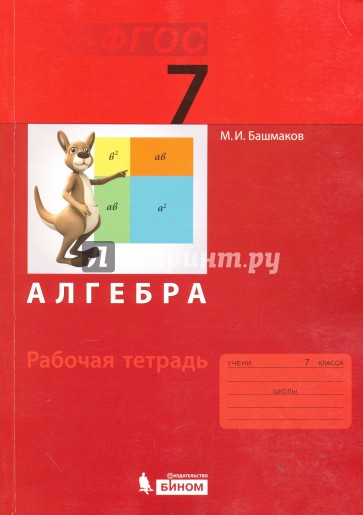 Рабочая тетрадь для 7 класса входит в состав УМК по алгебре для основной школы (7-9 классы, автор М. И. Башмаков) наряду с учебниками, методическим пособием и программой курса. Задания в тетради полностью отвечают содержанию учебника для 7 класса и разбиты на параграфы, соответствующие параграфам учебника.
