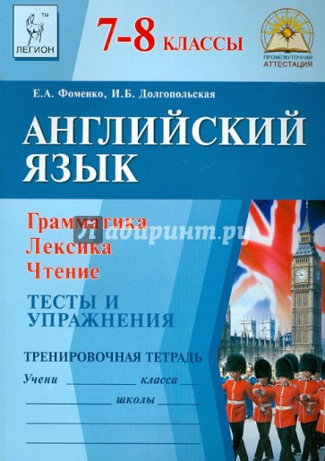 Предлагаемое пособие предназначено для проведения текущего контроля и промежуточной аттестации по английскому языку в 7-8-х классах общеобразовательных учреждений. Книга состоит из трёх разделов, включающих тестовые задания и тренировочные упражнения, - "Грамматика", "Лексика", "Чтение".