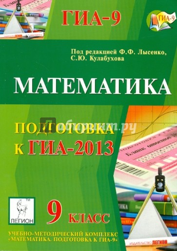 Пособие является частью учебно-методического комплекса "Математика. Подготовка к ГИА-9", включающего такие книги, как "Математика. Решебник. 9 класс. Подготовка к ГИА-2013", "Математика. 9 класс. Тематические тесты для подготовки к ГИА-2013", "Математика. 9 класс. Подготовка к ГИА-2013. Учебно-тренировочные тесты" и др.