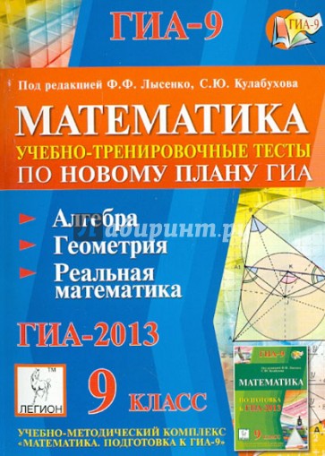Пособие является ключевым изданием учебно-методического комплекса "Математика. Подготовка к ГИА-9", включающего книги "Математика. 9 класс. Подготовка к ГИА-2013", "Математика. 9 класс. Тематические тесты для подготовки к ГИА-2013" (полный перечень книг - на сайте издательства www. legionr. ru) и др.