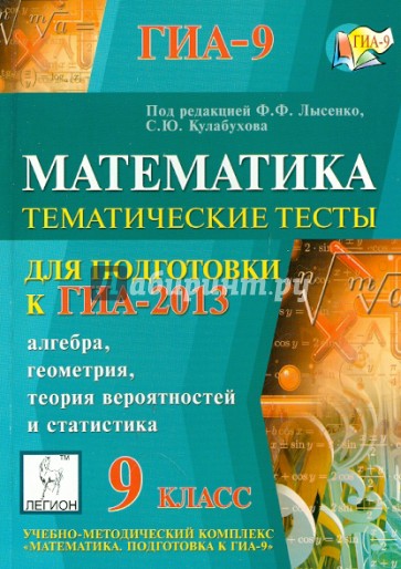 Пособие является частью учебно-методического комплекса "Математика. Подготовка к ГИА-9", включающего такие книги, как "Математика. 9 класс. Подготовка к ГИА-2013", "Математика. 9 класс. Подготовка к ГИА-2013. Учебно-тренировочные тесты", "Математика. Базовый уровень ГИА-9. Пособие для "чайников" (части 1 и 2) и др.