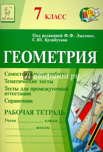 Подготовка к ГИА-9" и дополняет книгу издательства "Легион" "Алгебра. 7 класс. Тематические тесты. Промежуточная аттестация". Оно составлено в формате рабочей тетради, что позволит учащимся поэтапно отработать учебный материал по геометрии, необходимый для подготовки к ГИА. Содержательная часть пособия разработана в соответствии с положениями Федерального государственного образовательного стандарта основного общего образования.