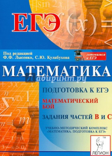 Книга посвящена решению заданий части В и С1-С4 при помощи технологии математического боя - интеллектуального соревнования команд. В процессе подготовки к единому экзамену с помощью данной книги достигаются как минимум три цели - отработка индивидуальных умений обучающихся, организация эффективного повторения материала в классе или в группе школьников и формирование коллективных навыков решения задач.