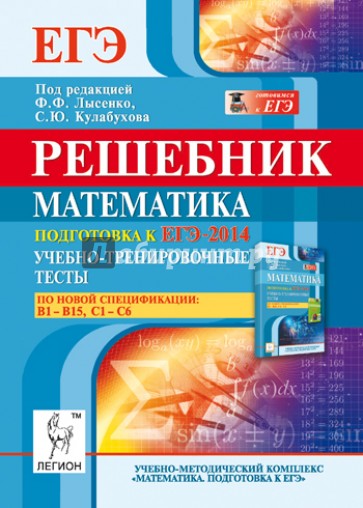 Данный решебник предназначен для подготовки обучающихся к ЕГЭ по математике. Он содержит решения всех вариантов учебно-тренировочных тестов пособия "Математика. Подготовка к ЕГЭ-2014. Учебно-тренировочные тесты по новой спецификации: В1-В15, С1-С6" под редакцией Ф.Ф. Лысенко, С.Ю. Кулабухова.
