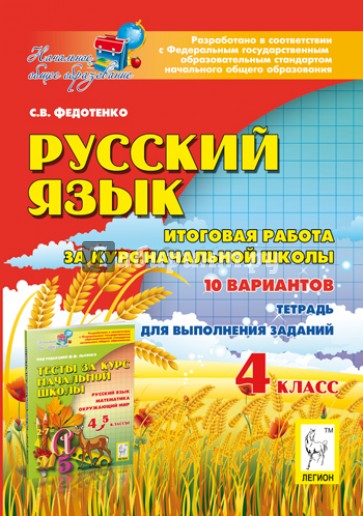 В пособии представлены 10 вариантов итоговой работы по русскому языку за курс начальной школы. Каждый вариант является типовым и включает задания трех уровней сложности (базового, повышенного и высокого). Тесты могут послужить материалом для текущего контроля и промежуточной аттестации за курс начальной школы, а также для подготовки одаренных учащихся к различным олимпиадам и конкурсам. Пособие окажет помощь учителю в диагностике знаний, умений, навыков и языковой компетенции учащихся в процессе их перехода на II ступень обучения.