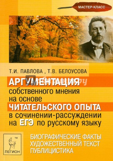 В пособии представлен материал для аргументации к выполнению задания части С на едином государственном экзамене. Подготовка к сочинению-рассуждению строится на основе проведения письменных творческих работ учащихся различных жанров в процессе изучения школьного курса русского языка в 10-11 классах. Системный подход к обучению написания сочинения отражён как в жанровой специфике письменных работ, так и в их тематическом единстве. Основой для развития самостоятельности мышления, умения аргументировать собственное мнение с опорой на читательский опыт являются литературно-критические материалы о творчестве А.П. Чехова и его художественные произведения.