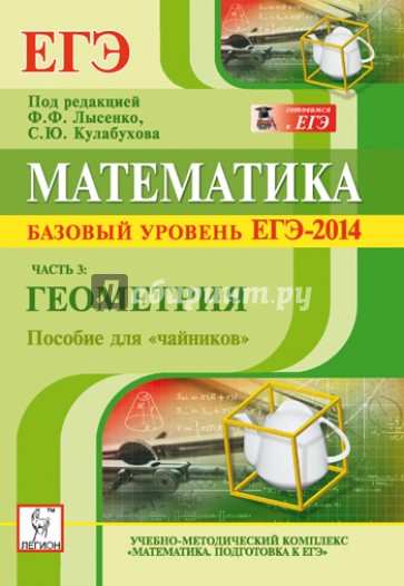 Другие задания части В рассматриваются в следующих книгах "Математика. Базовый уровень ЕГЭ-2014. Пособие для "чайников". Часть 1: Арифметика и алгебра" и "Математика. Базовый уровень ЕГЭ-2014. Пособие для "чайников". Часть 2: Алгебра и начала анализа".