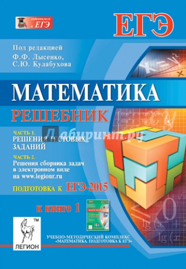 Часть I - настоящее пособие. Оно содержит решения всех вариантов учебно-тренировочных тестов пособия "Математика. Подготовка к ЕГЭ-2015. Книга 1" под редакцией Ф. Ф. Лысенко, С. Ю. Кулабухова.