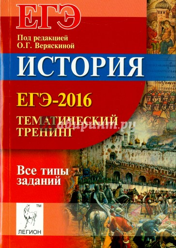Предлагаемое пособие предназначено для активной подготовки к ЕГЭ по истории (преимущественно в 11 классе). Оно построено по тематическому принципу, каждый раздел включает параграфы, посвящённые всем представленным на ЕГЭ типам заданий (задания на знание хронологии, на знание фактов, процессов и явлений, на умение работать с терминами и понятиями, с историческим текстом и пр.). Книга даёт представление обо всех типах заданий и вариантах их формулировок. Она поможет систематизировать изученный материал, повторить его и отработать все необходимые умения и способы учебных действий перед тем, как приступить к завершающей фазе подготовки - к решению тренировочных вариантов (пособие под редакцией О.Г. Веряскиной "История. Подготовка к ЕГЭ-2016"). Издание предназначено выпускникам школ, готовящимся к ЕГЭ, учителям, методистам и родителям для организации подготовки к экзамену. Книга является частью учебно-методического комплекса "История. Подготовка к ЕГЭ".