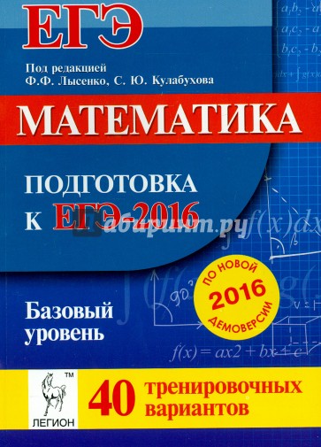 40 новых авторских учебно-тренировочных тестов, составленных по проекту спецификации ЕГЭ-2016 (базовый уровень) от 21.08.2015;