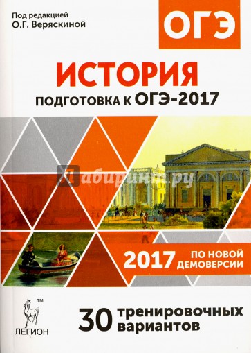 Предлагаемое учебно-методическое пособие издательства "Легион" предназначено для подготовки к ОГЭ по истории. Книга окажет неоценимую помощь девятиклассникам, выбравшим этот экзамен, в систематизации знаний, формировании и отработке всех необходимых предметных и метапредметных компетенций и универсальных учебных действий. С помощью этой книги можно научиться выполнять все типы заданий предстоящего экзамена, повторить необходимый материал, отработать и закрепить важные умения. Учитель сможет использовать пособие на уроках и дополнительных занятиях по истории, при подготовке к контрольным работам и другим формам текущего и тематического контроля, работать с обучающимися в классе, малой группе или индивидуально. Книга содержит весь необходимый для подготовки к ОГЭ по истории материал: 30 тренировочных вариантов, составленных по проектам спецификации и демоверсии ОГЭ-2017 по истории, опубликованным 19.08.2016 г.; ответы ко всем заданиям; краткие методические рекомендации; справочные материалы (хронологические таблицы, список правителей и дат их пребывания у власти). Пособие предназначено обучающимся 9-х классов, учителям, методистам и родителям, которые самостоятельно организуют процесс подготовки детей к экзамену.
