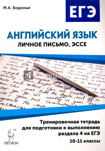 Предлагаемое пособие предназначено для поэтапной систематической подготовки к выполнению заданий открытого типа (раздела 4) на ЕГЭ по английскому языку. Издание в форме тренировочной тетради позволит автоматизировать умения обучающихся в области письменной речи и научиться успешно выполнять задания раздела 4 - личное письмо и эссе - по определённому алгоритму, позволяющему получить на экзамене максимально высокий балл. Книга содержит 20 уроков, каждый из которых включает задания на написание личного письма и эссе. Ко всем урокам предлагаются таблицы оценивания, составленные в соответствии с критериями демонстрационного варианта ЕГЭ. Тематика заданий охватывает все вопросы и проблемы, представленные в Кодификаторе элементов содержания и требований к уровню подготовки выпускников к ЕГЭ. Кроме непосредственно заданий, в уроки включен дополнительный материал (банк аргументов, необходимые для использования в том или ином контексте обороты речи, цитаты, поговорки и др.), который поможет расширить знания школьников об элементах письменной речи. Для написания эссе предложены модели письменного высказывания, включающие примерное разделение на абзацы и слова-связки. Тренировочная тетрадь адресована обучающимся 10-11 классов, готовящимся к сдаче ЕГЭ по английскому языку, для самостоятельной работы и подготовки под руководством учителя в классе и во внеурочное время.