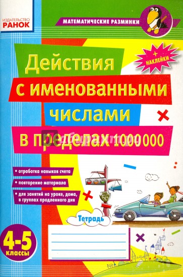 Пособие содержит задания на действия с именованными числами в пределах 1000000, что является обязательной составляющей изучения математики. Оно предназначено для отрабатывания материала, изученного на уроках. К тетради прилагаются наклейки, с помощью которых учащийся сам сможет условно оценить свои результаты, наклеив соответствующую из них.