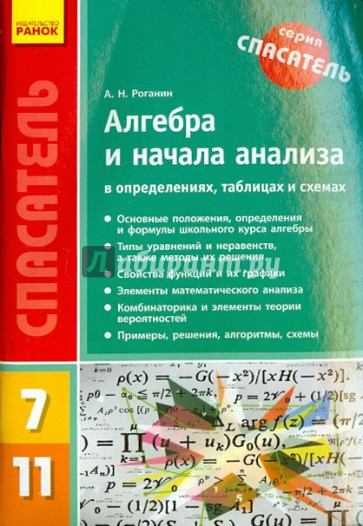 Пособие содержит основные положения школьного курса алгебры и начал анализа. Справочник поможет найти необходимую информацию (определения, формулы, примеры); вспомнить, как решаются типовые задания; повторить материал при подготовке к уроку, контрольной работе, государственной итоговой аттестации, внешнему независимому оцениванию.
