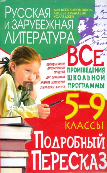 Издание содержит пересказ произведений, изучаемых в курсе русской и зарубежной литературы в 5-9 классах. Эта книга поможет школьнику овладеть навыками творческого чтения и анализа художественных произведений с привлечением необходимых сведений по теории и истории литературы. Тексты поэтических произведений даны полностью либо в виде отрывков.